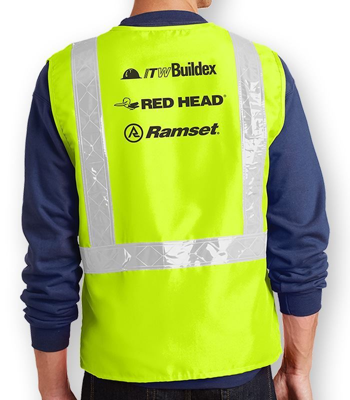 This safety vest combines reflective taping with a fluorescent body color for high visibility.